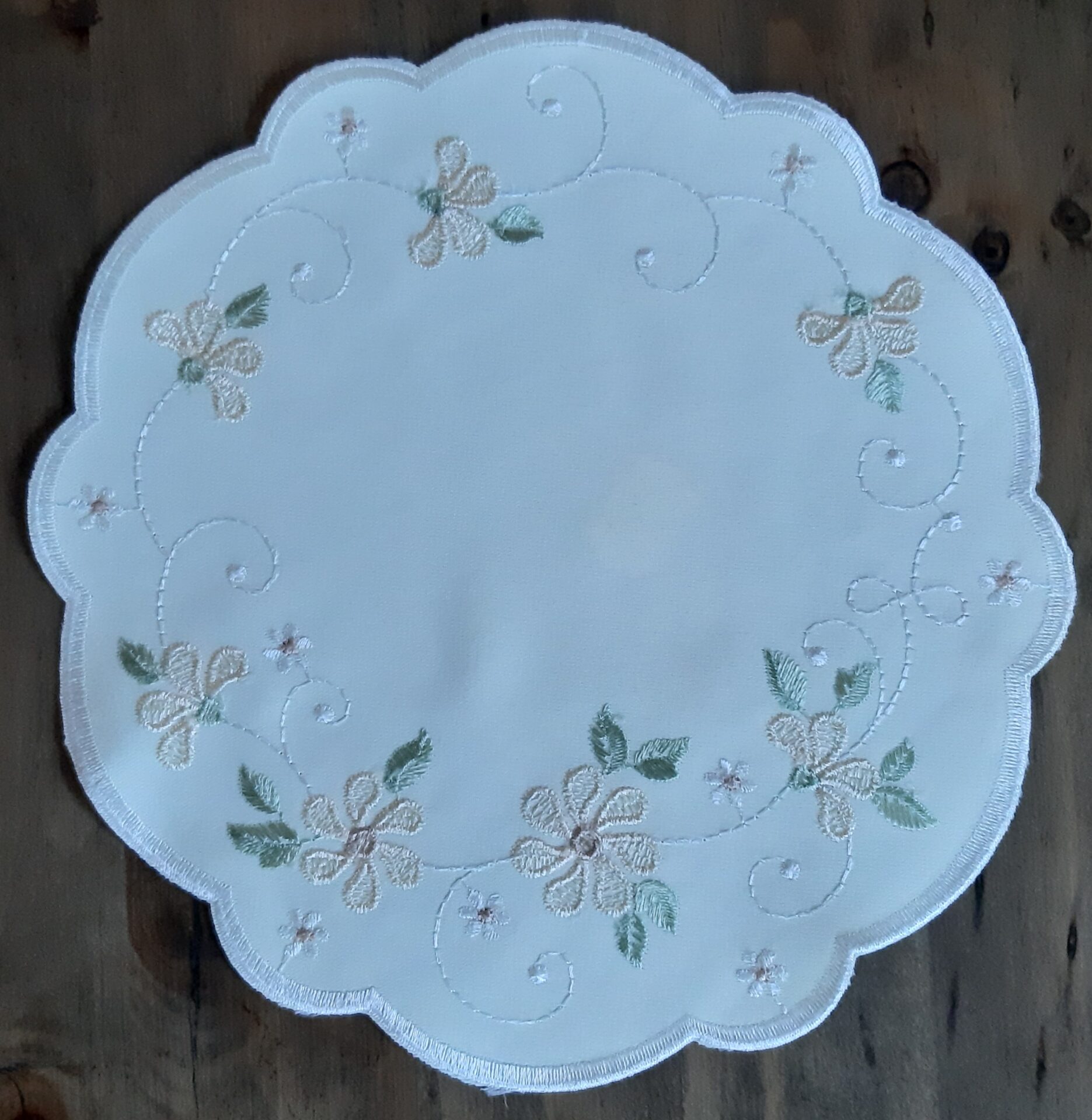 - Farbe: beige – gelb (Foto des 15 cm Deckchens ist farblich übereinstimmend)