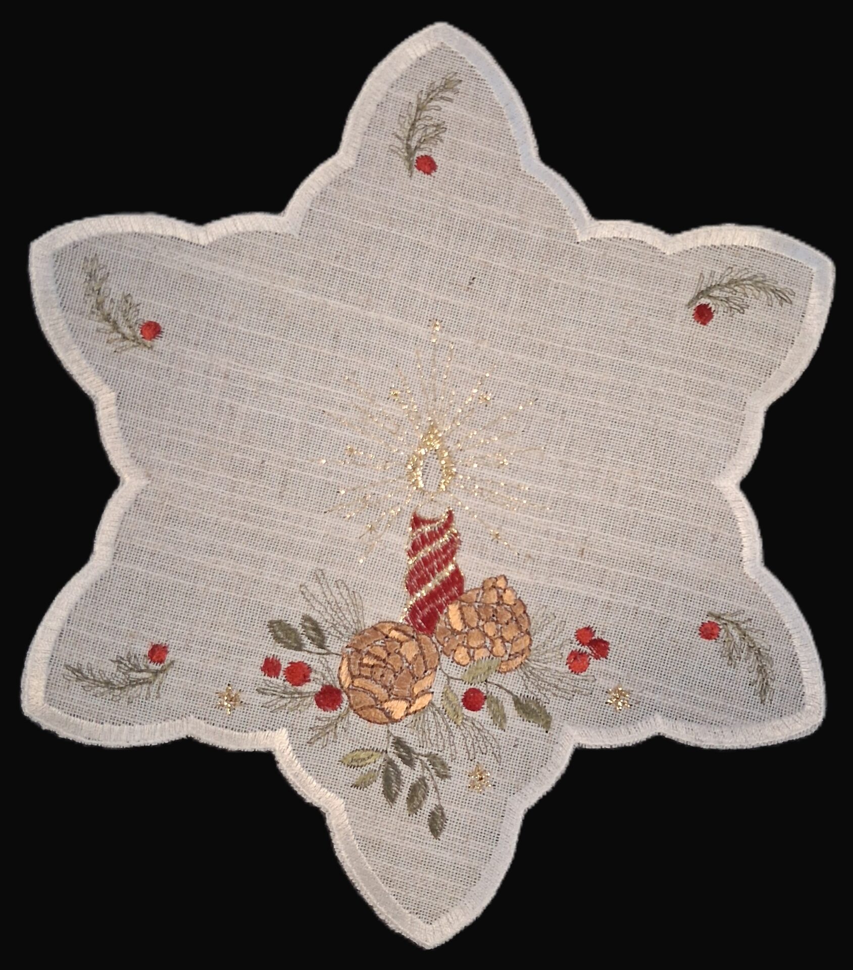 Deckchen Serie Kerze mit Zapfen 85 % PAS 15 % Leinen