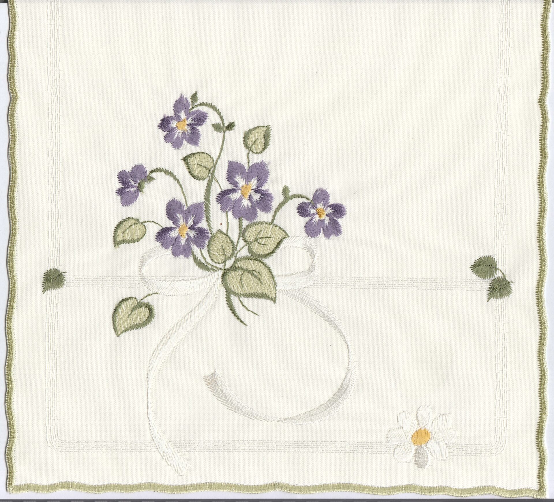 Mit dieser Tischwäsche auf einer stabilen, feinen Grundware mit hochwertigen gestickten Veilchen zaubern Sie den Frühling in Ihr Zuhause. Natürlich ist es auch immer ein schönes Geschenk.
