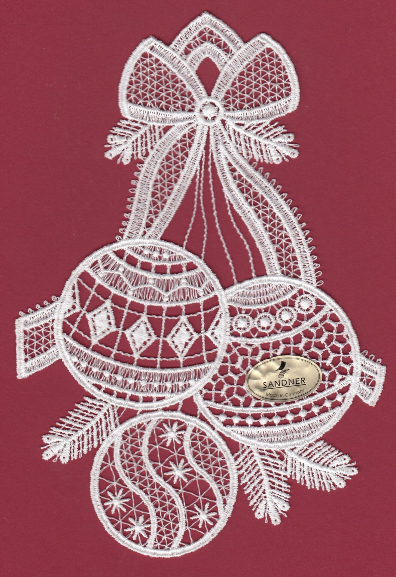 Fensterbild aus echter Plauener Spitze in klassischem Stil für die festliche Deko zu Weihnachten. Ob Sie Sich für das Design Stern,  Kugeln bzw. Glocken oder gleich für alle Drei entscheiden, diese hochwertig verarbeiteten Artikel verleihen Ihrem Zuhause eine stilvolle Note. Hergestellt aus Polyester in Weiß sind sie perfekt für Alle, die eine hochwertige und traditionelle Dekoration schätzen.