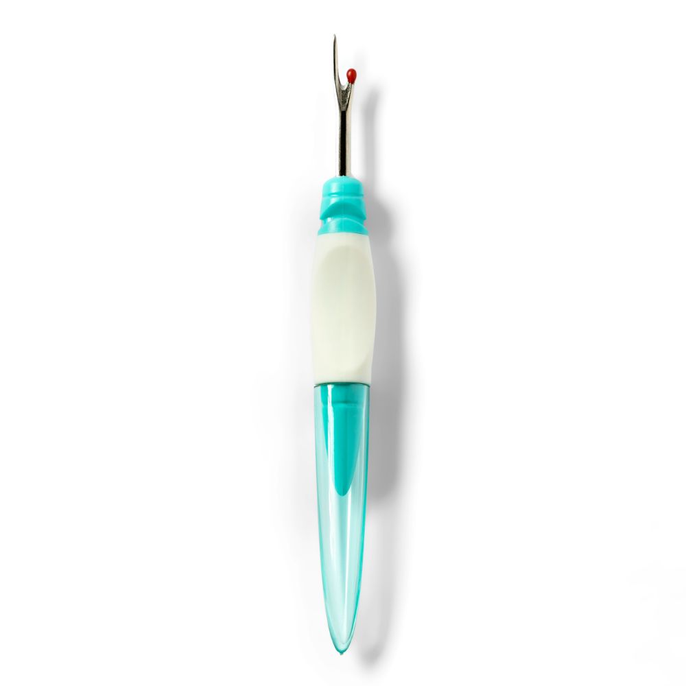 Der Nahttrenner aus dem Hause Prym bietet Spitzenqualität und macht genau das, was er soll: Mit seiner Hilfe können vor allem Nähte von Stoffen aufgetrennt werden. Stabil in der Ausführung liegt er auch bei längerem Arbeiten sehr gut in der Hand und seine scharfe Klinge mit Kugelspitze trennt mühelos das Garn vom Stoff. Die Verschlusskappe lässt sich wie ein Füllfederhalter hinten aufstecken und verlängert so den Griff – gleichzeitig ist die Klinge des Nahttrenners von Prym durch eine stabile Hülle aus Kunststoff sicher geschützt.