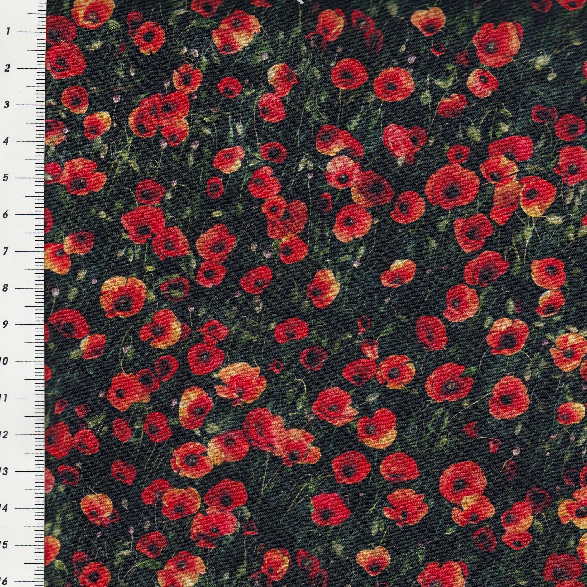 Dieser Stoff mit einem bezaubernden Mohnblumenmuster auf schwarzem Untergrund ist aus hochwertiger Baumwolle gefertigt und eignet sich perfekt für verschiedene kreative Projekte wie Quilten, Basteln, oder das Herstellen von Accessoires. Mit einer Breite von 115 cm ist dieser Stoff vielseitig einsetzbar und bringt Farbe und Charme in jedes DIY-Projekt. Ideal für Produkte wie Kissen, Decken, Taschen und Beutel.