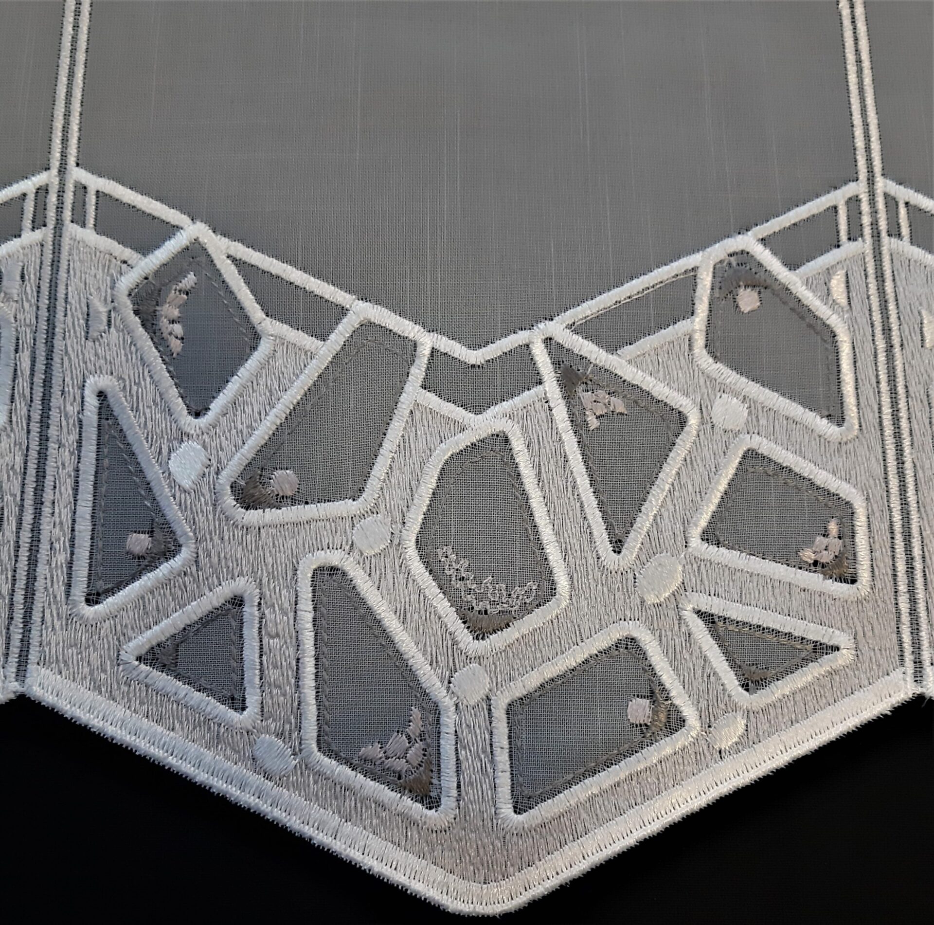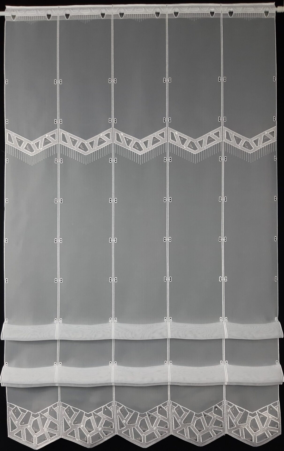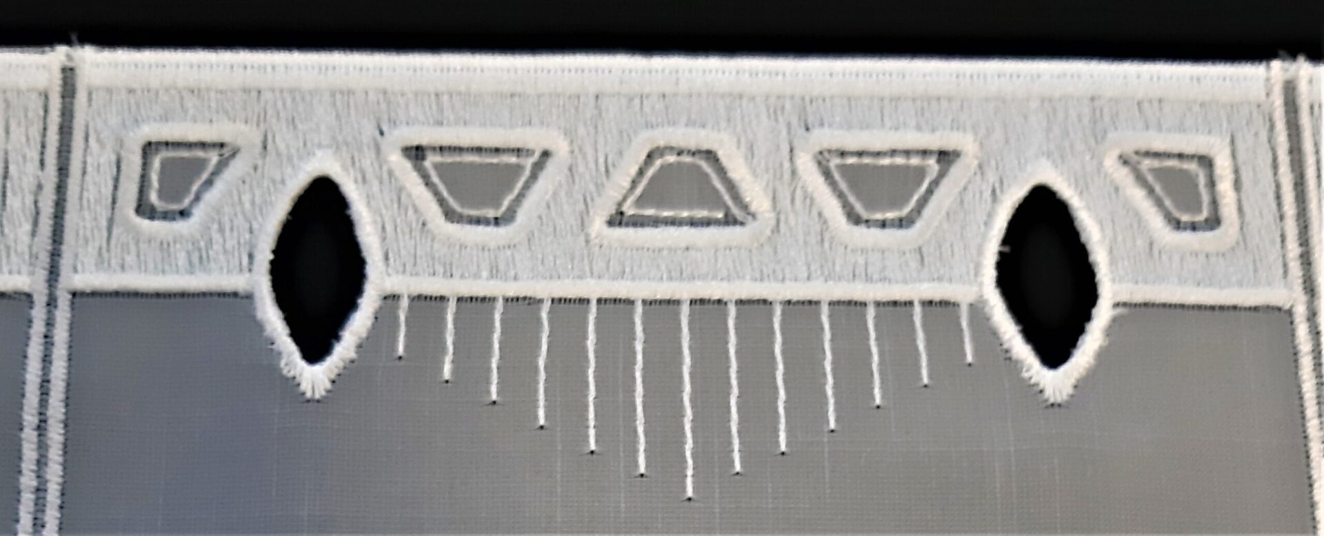 Die Gardine wird zwischen den 16 cm breiten Rapporten geschnitten und benötigt daher keine Seitennaht.