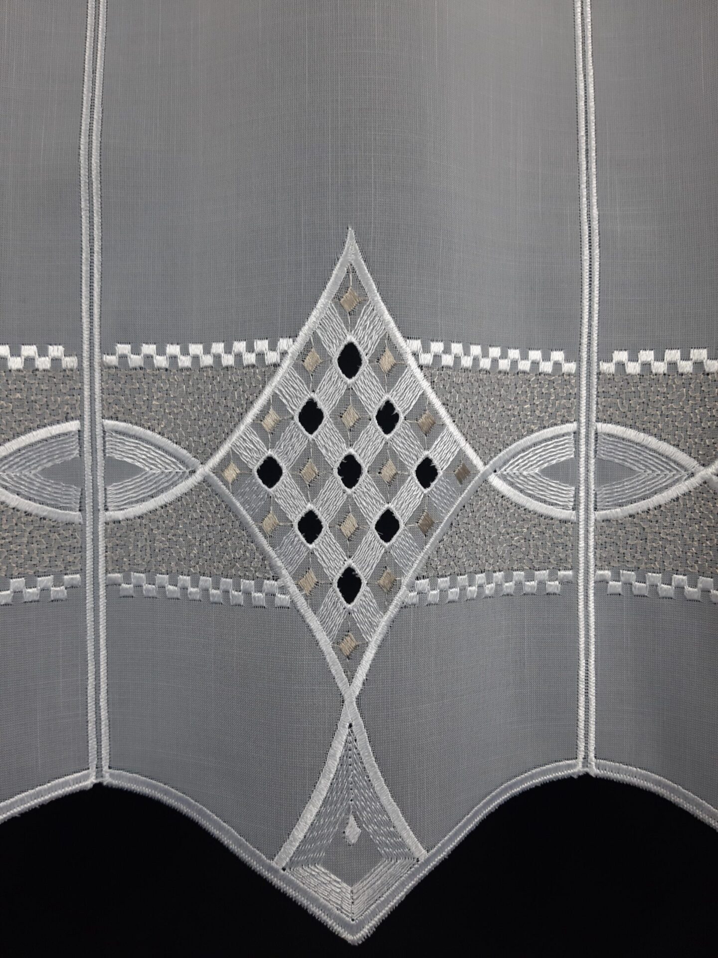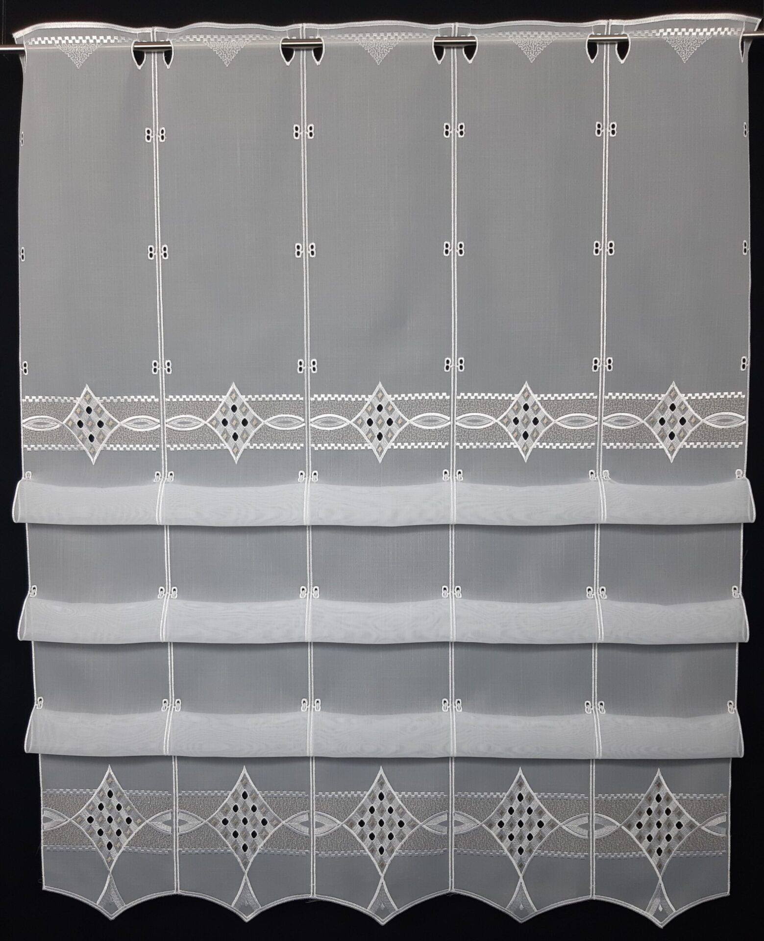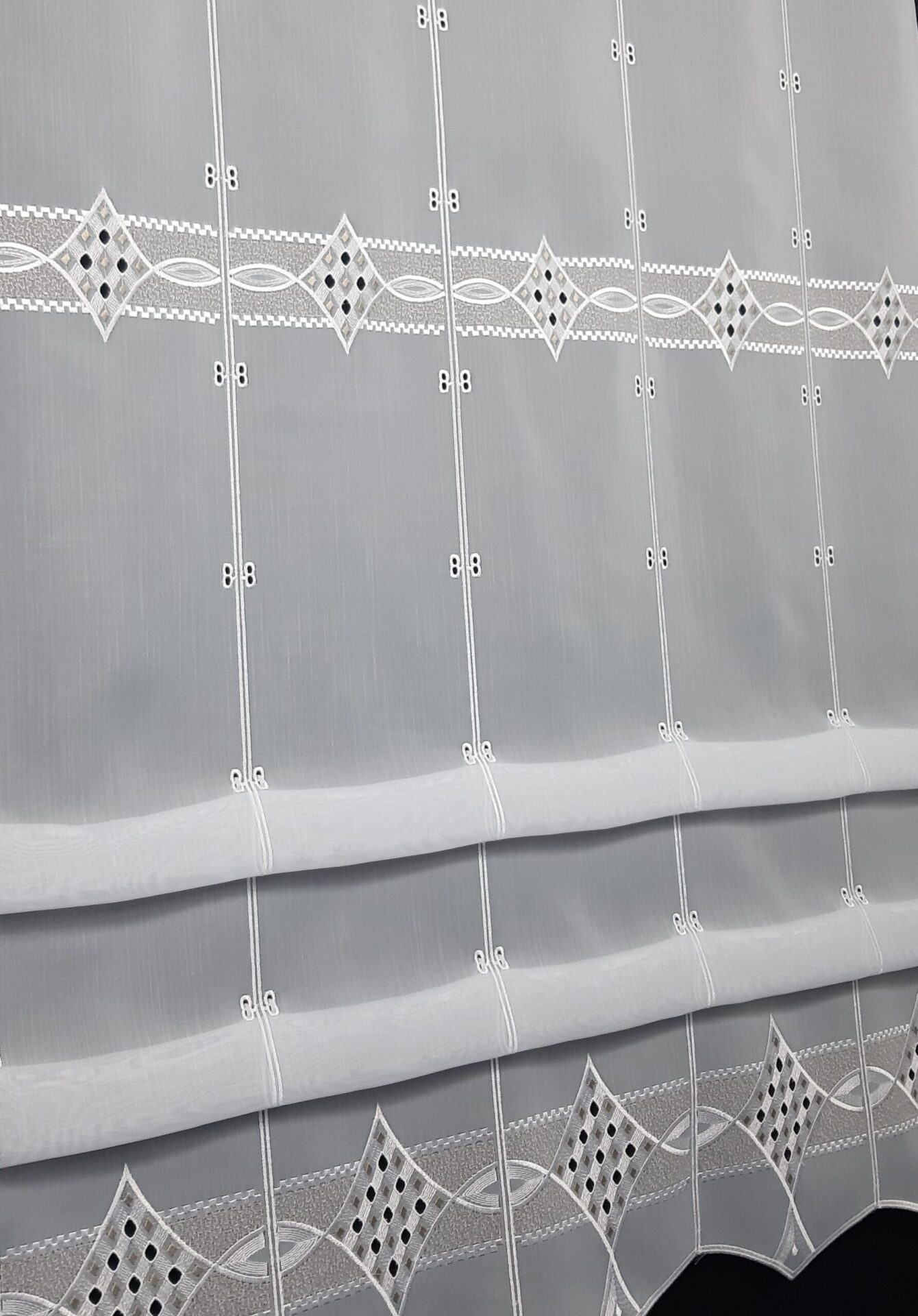 Raffrollo LIA weiß/beige 133 und 167 cm hoch Muster: Raute, Plauener Spitze