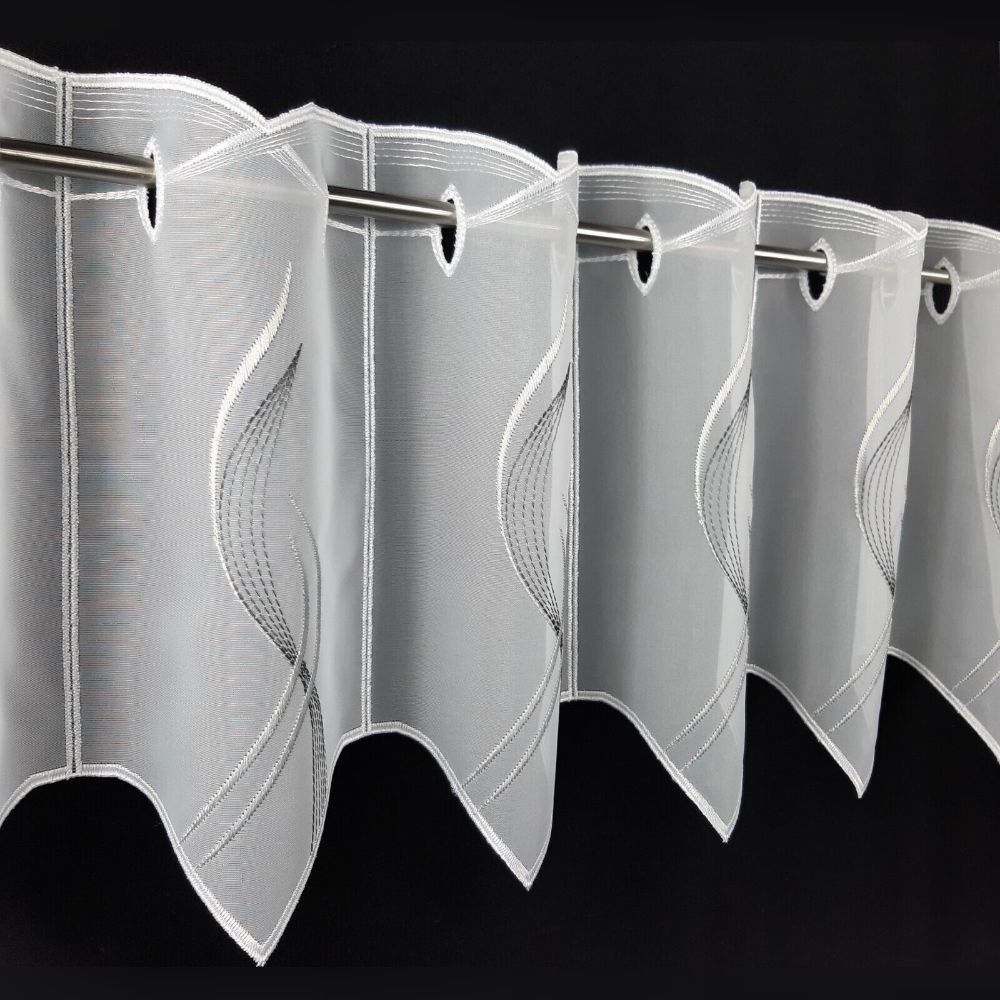 Die Scheibengardine ist ein modernes und pflegeleichtes Accessoire für jedes Zimmer. Die halbtransparente Gardine ist aus 100% Polyester gefertigt und besticht durch ihr geometrisches Muster in Weiß und Grau mit einem Rapport von 16 cm. Die Bistrogardine ist in verschiedenen Längen und Breiten erhältlich und kann einfach mit einer Stangendurchzug-Aufhängung am Fensterrahmen befestigt werden. Besonders hervorzuheben ist die hochwertige Stickerei, die der Gardine eine besondere Note verleiht. Hergestellt wird die Bistrogardine in Deutschland.